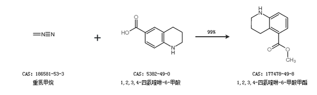 1.通过重氮甲烷和1,2,3,4-四氢喹啉-6-甲酸合成1,2,3,4-四氢喹啉-6-甲酸甲酯,收率约99%;