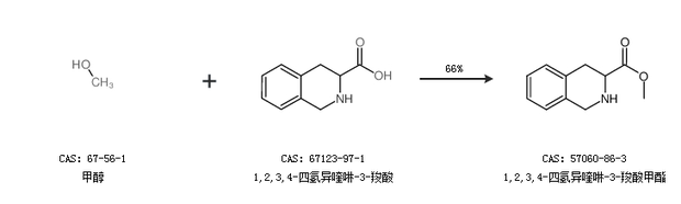 1.通过甲醇和1,2,3,4-四氢异喹啉-3-羧酸合成1,2,3,4-四氢异喹啉-3-羧酸甲酯,收率约66%;