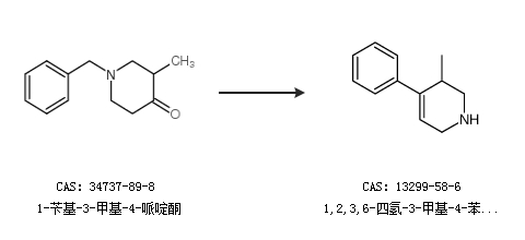 2.通过1-苄基-3-甲基-4-哌啶酮合成1,2,3,6-四氢-3-甲基-4-苯基吡啶