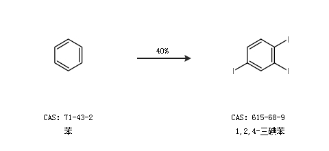 2.通过苯合成1,2,4-三碘苯,收率约40%;