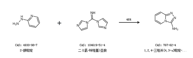 1.通过2-肼吡啶和二(1氢-咪唑基)亚胺合成1,2,4-三唑并[4,3-a]吡啶-3-胺,收率约46%;