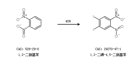 1.通过1,2-二硝基苯合成1,2-二碘-4,5-二硝基苯,收率约40%;