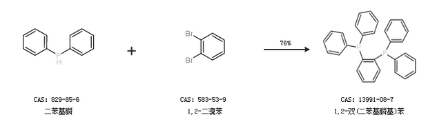 1.通过二苯基膦和1,2-二溴苯合成1,2-双(二苯基膦基)苯,收率约76%;