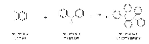 2.通过1,2-二氟苯和二苯基氯化膦合成1,2-双(二苯基膦基)苯,收率约77%;