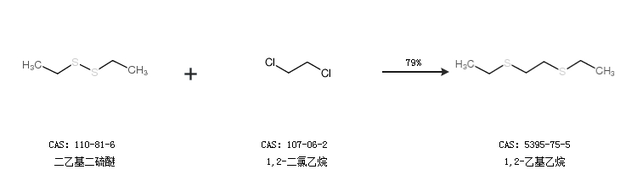 2.通过二乙基二硫醚和1,2-二氯乙烷合成1,2-乙基乙烷,收率约79%;