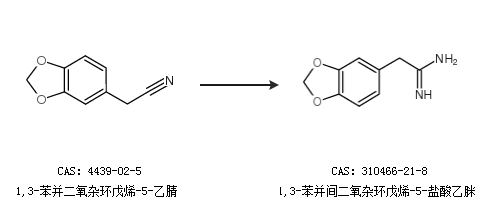 1.通过1,3-苯并二氧杂环戊烯-5-乙腈合成1,3-苯并间二氧杂环戊烯-5-盐酸乙脒