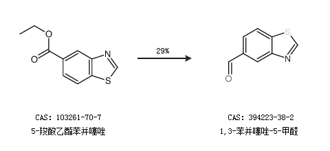 1.通过5-羧酸乙酯苯并噻唑合成1,3-苯并噻唑-5-甲醛,收率约29%;