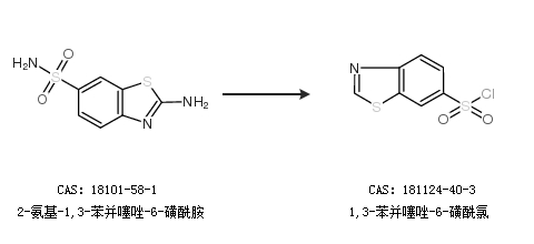 2.通过2-氨基-1,3-苯并噻唑-6-磺酰胺合成1,3-苯并噻唑-6-磺酰氯
