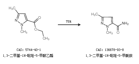1.通过1,3-二甲基-1H-吡唑-5-甲酸乙酯合成1,3-二甲基-1H-吡唑-5-甲酰胺,收率约75%;