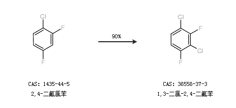 1.通过2,4-二氟氯苯合成1,3-二氯-2,4-二氟苯,收率约90%;