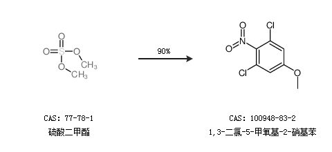 1.通过硫酸二甲酯合成1,3-二氯-5-甲氧基-2-硝基苯,收率约90%;