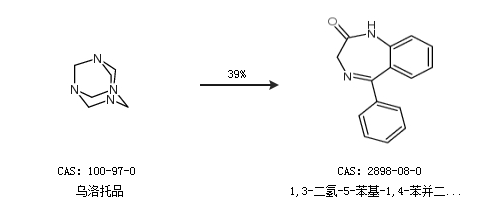 2.通过乌洛托品合成1,3-二氢-5-苯基-1,4-苯并二氮杂卓-2-酮,收率约39%;