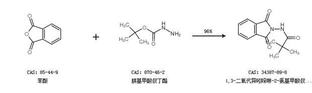 1.通过苯酐和肼基甲酸叔丁酯合成1,3-二氧代异吲哚啉-2-氨基甲酸叔丁酯,收率约96%;