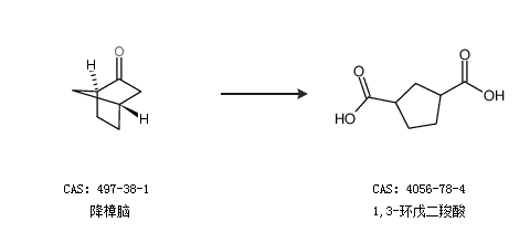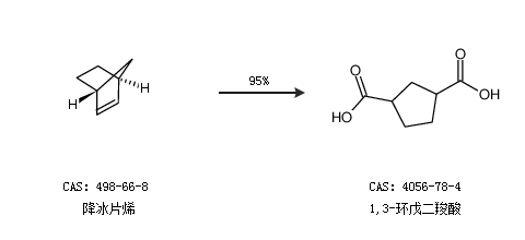 1.通过降冰片烯合成1,3-环戊二羧酸,收率约95%;