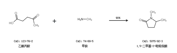 1.通过乙酰丙酸和甲胺合成1,5-二甲基-2-吡咯烷酮,收率约90%;