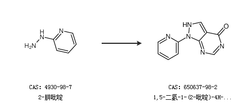 1.通过2-肼吡啶合成1,5-二氢-1-(2-吡啶)-4H-吡唑并[3,4-d]嘧啶-4-酮
