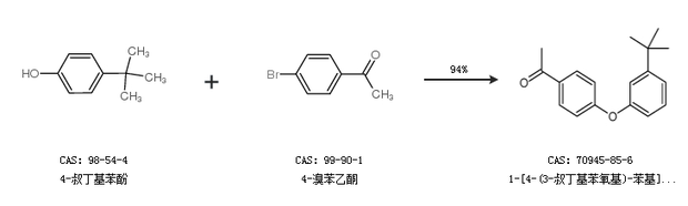 2.通过4-叔丁基苯酚和对氯苯乙酮合成1-[4-(3-叔丁基苯氧基)-苯基]-乙酮,收率约70%;
