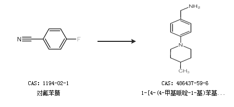 2.通过对氟苯腈合成1-[4-(4-甲基哌啶-1-基)苯基]甲胺