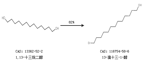 1.通过1,13-十三烷二醇合成13-溴十三-1-醇,收率约82%;