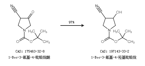 1.通过1-Boc-3-氰基-4-吡咯烷酮合成1-Boc-3-氰基-4-羟基吡咯烷,收率约97%;