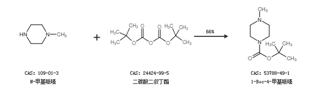 2.通过N-甲基哌嗪和二碳酸二叔丁酯合成1-Boc-4-甲基哌嗪,收率约66%;