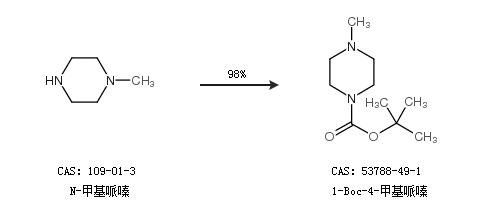 1.通过N-甲基哌嗪合成1-Boc-4-甲基哌嗪,收率约98%;