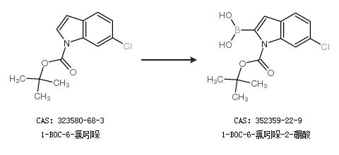 1-BOC-6-氯吲哚-2-硼酸有什么方法可以合成?