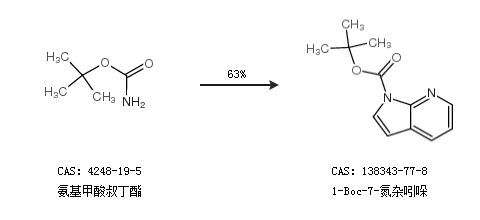 2.通过氨基甲酸叔丁酯合成1-Boc-7-氮杂吲哚,收率约63%;