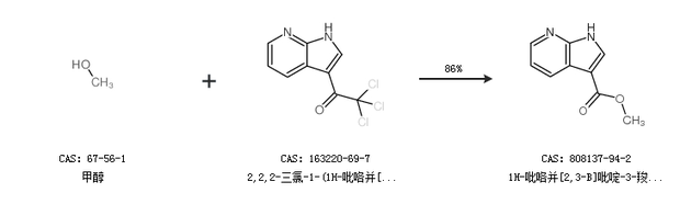 2.通过甲醇和2,2,2-三氯-1-(1H-吡咯并[2,3-b]吡啶-3-基)-乙酮合成1H-吡咯并[2,3-B]吡啶-3-羧酸甲酯,收率约86%;