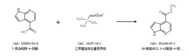 2.通过7-氮杂吲哚-4-羧酸和三甲基硅烷化重氮甲烷合成1H-吡咯并[2,3-b]吡啶-4-羧酸甲酯