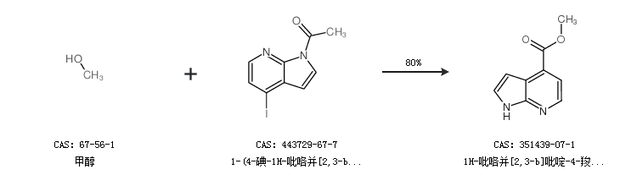 1.通过甲醇和1-(4-碘-1H-吡咯并[2,3-b]吡啶)-乙酮合成1H-吡咯并[2,3-b]吡啶-4-羧酸甲酯,收率约80%;