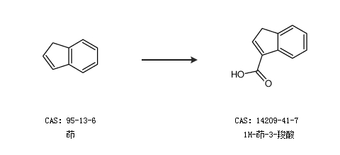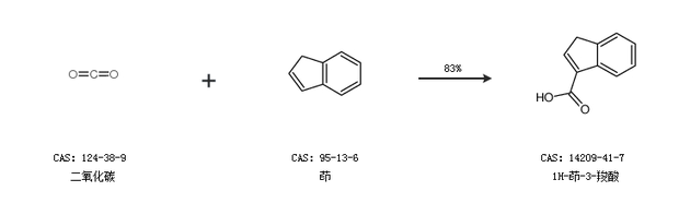 1.通过二氧化碳和茚合成1H-茚-3-羧酸,收率约83%;