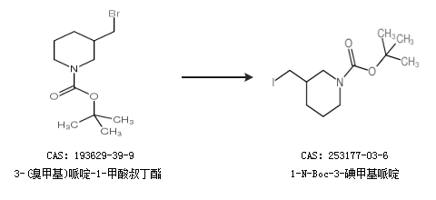 2.通过3-(溴甲基)哌啶-1-甲酸叔丁酯合成1-N-Boc-3-碘甲基哌啶