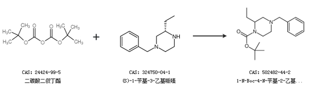 1.通过二碳酸二叔丁酯和(S)-1-苄基-3-乙基哌嗪合成1-N-Boc-4-N-苄基-2-乙基哌嗪