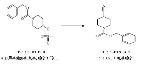 2.通过4-[(甲基磺酰基)氧基]哌啶-1-羧酸苄酯合成1-N-Cbz-4-氰基哌啶