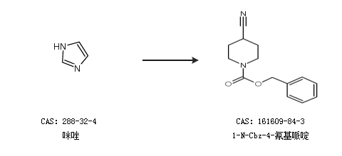 1.通过咪唑合成1-N-Cbz-4-氰基哌啶