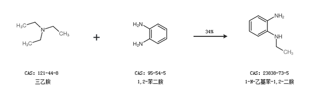 2.通过三乙胺和1,2-苯二胺合成1-N-乙基苯-1,2-二胺,收率约34%;