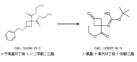1.通过3-苄氧基环丁烷-1,1-二甲酸二乙酯合成1-氨基-3-氧代环丁烷-1-羧酸乙酯