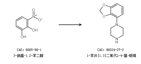 1.通过3-硝基-1,2-苯二醇合成1-苯并[1,3]二氧代l-4-基-哌嗪