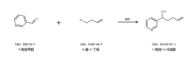 1.通过3-吡啶甲醛和4-溴-1-丁烯合成1-吡啶-3-戊烯醇,收率约96%;