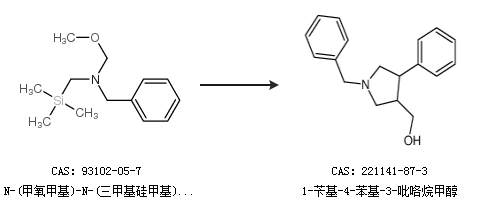 1.通过N-(甲氧甲基)-N-(三甲基硅甲基)苄胺合成1-苄基-4-苯基-3-吡咯烷甲醇