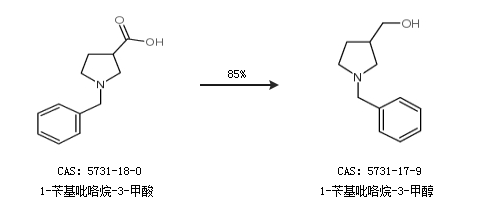 2.通过1-苄基吡咯烷-3-甲酸合成1-苄基吡咯烷-3-甲醇,收率约85%;