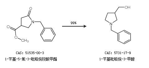 1.通过1-苄基-5-氧-3-吡咯烷羧酸甲酯合成1-苄基吡咯烷-3-甲醇,收率约99%;