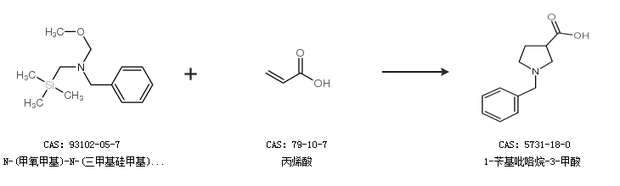 1.通过N-(甲氧甲基)-N-(三甲基硅甲基)苄胺和丙烯酸合成1-苄基吡咯烷-3-甲酸