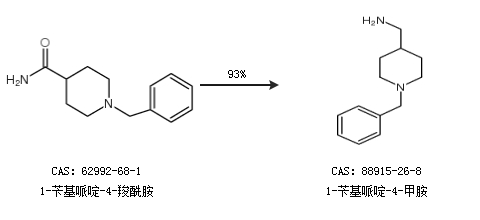 1.通过1-苄基哌啶-4-羧酰胺合成1-苄基哌啶-4-甲胺,收率约93%;