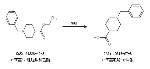 1.通过1-苄基-4-哌啶甲酸乙酯合成1-苄基哌啶-4-甲酸,收率约99%;