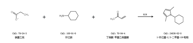 1.通过硝基乙烷、环己胺和丁烯酮 甲基乙烯基酮合成1-环己基-2,5-二甲基-1H-吡咯,收率约61%;