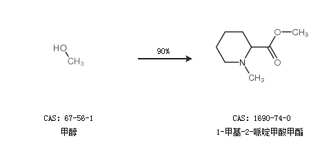1.通过甲醇合成1-甲基-2-哌啶甲酸甲酯,收率约90%;