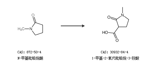 1.通过3-氧代-1-吡咯烷羧酸乙酯合成1-甲基-2-氧代吡咯烷-3-羧酸,收率约72%;