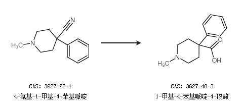 1.通过4-氰基-1-甲基-4-苯基哌啶合成1-甲基-4-苯基哌啶-4-羧酸